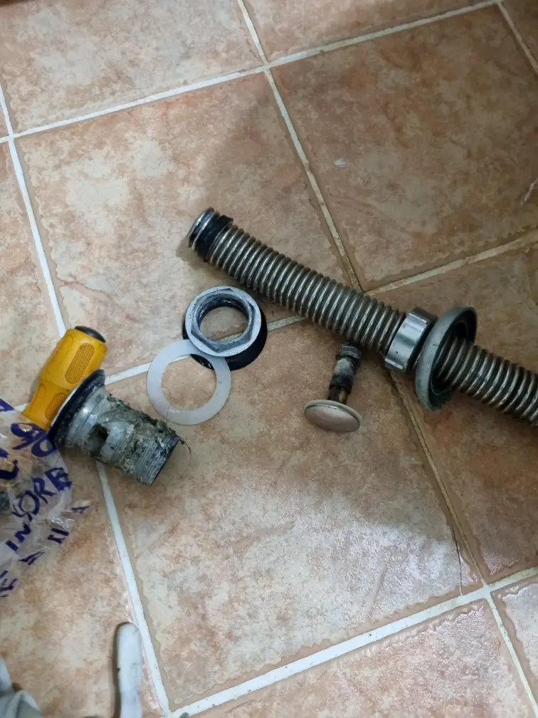 레버와 연결된 로드도 분리합니다. 수전 뒤쪽의 레버 하단에서 연결 클립을 풀면 로드를 분리할 수 있습니다. 클립은 스프링 타입이나 나사 타입이 있으며, 타입에 맞게 제거합니다. 모든 부품이 분리되면 배수구통도 함께 제거하여 세면대 배수구 주변을 깨끗하게 청소합니다.